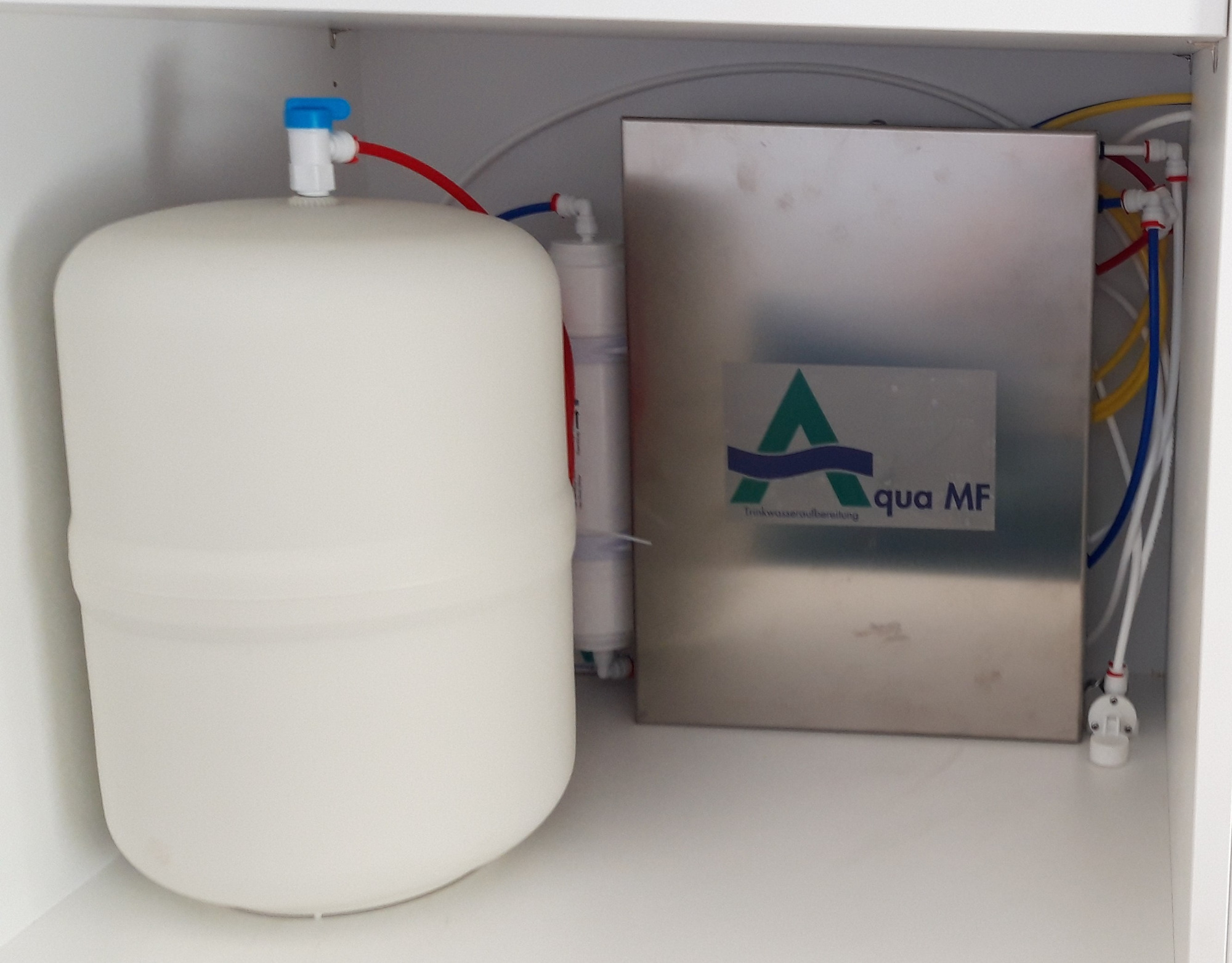 Unser Komponenten Trinkwasserfiltersystem im modernen Edelstahlgehäuse, geschützt vor elktromagnetischer Strahlung.